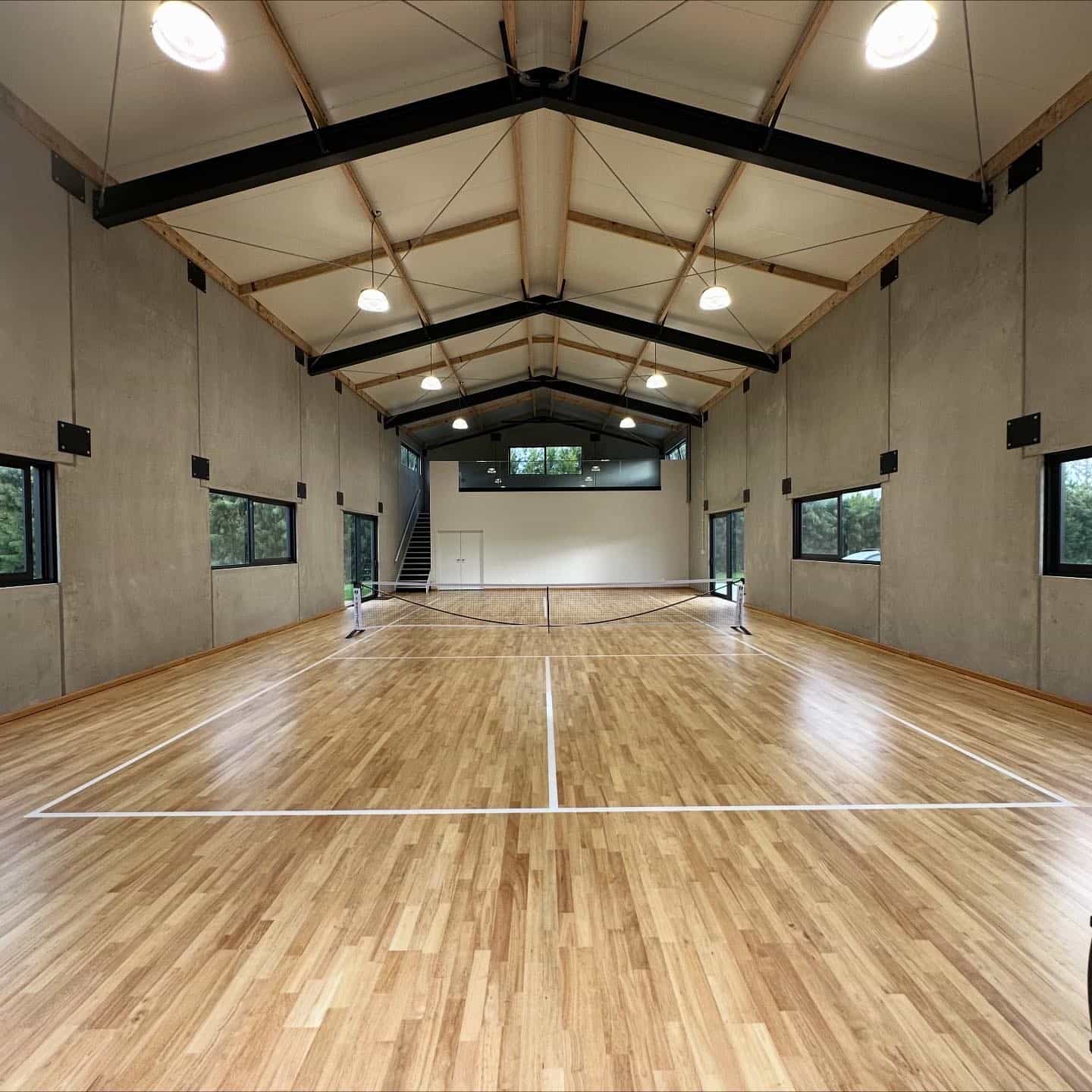 Come play pickleball at Waipu Celtic Barn in Waipu, Northland! There are two indoor wood courts. The lines are permanent, and portable nets are available. The courts are free.