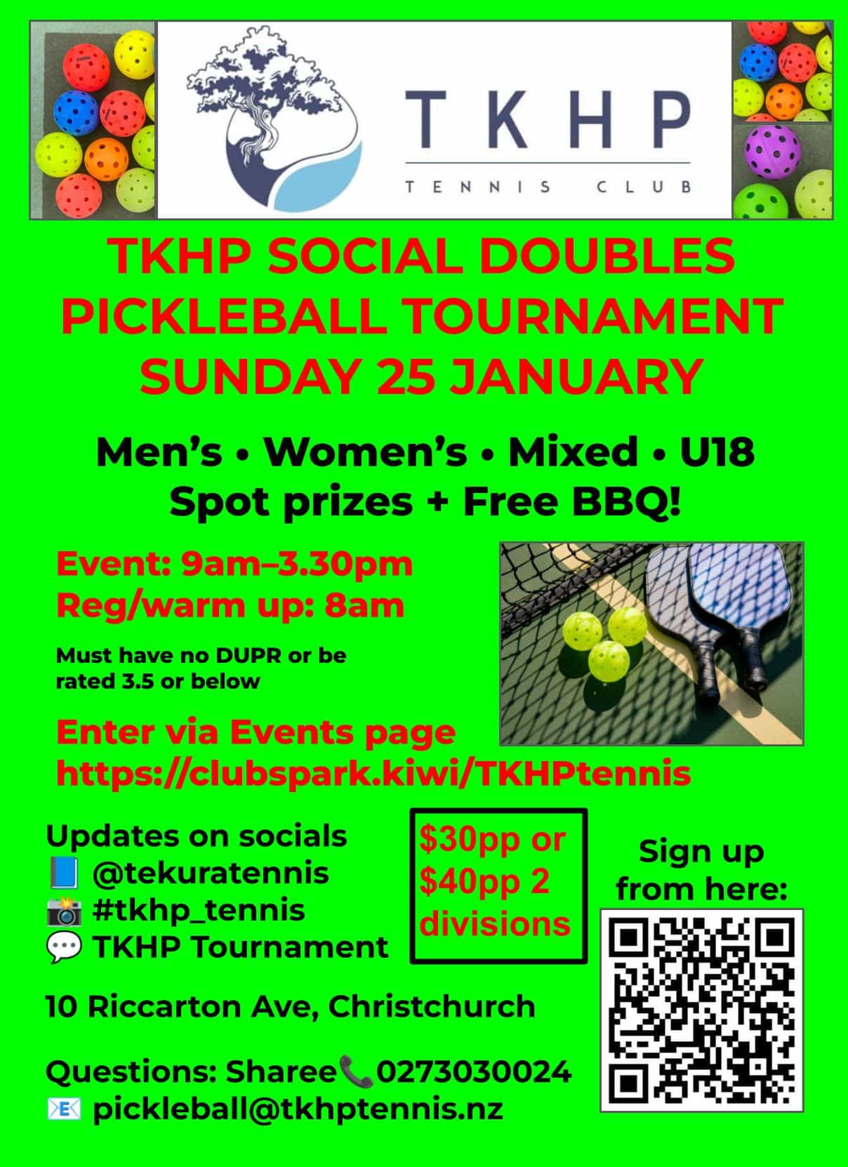 For more information about the event contact Sharee 027 303 0024 or email: pickleball@tkhptennis.nz